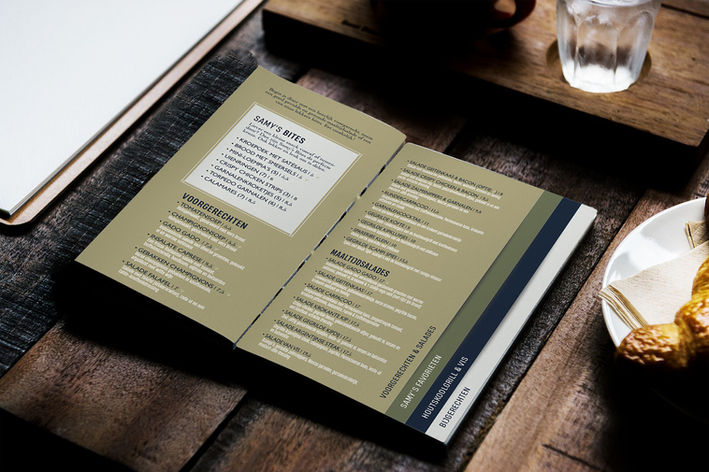Samen met Samy's zijn we aan de slag gegaan met een branding die de essentie van het restaurant vastlegt. Met donkerblauw als basis - een eerbetoon aan de rijke geschiedenis en herkenbaarheid van het merk - hebben we subtiele accenten van groen en beige toegevoegd om een vleugje frisheid en elegantie te brengen.